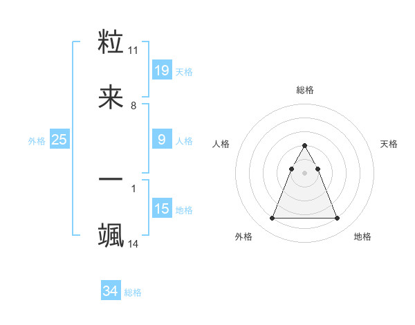 粒来 一颯さんの外格は25画の4点!