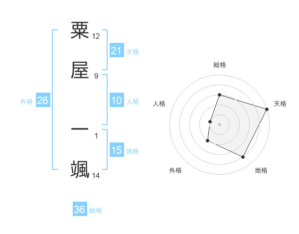 粟屋 一颯さんの天格は21画の5点!