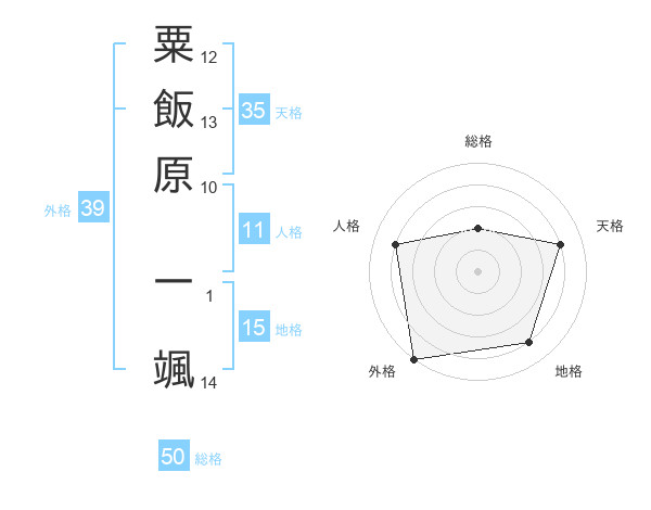 粟飯原 一颯さんを姓名の画数から五運を鑑定