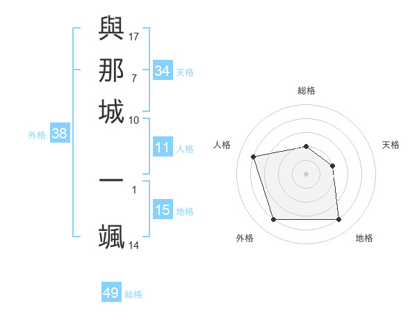 與那城 一颯さんの外格は38画の4点!