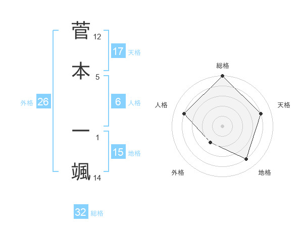 菅本 一颯さんの総格は32画の5点!