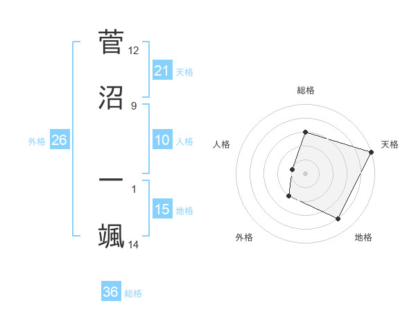 菅沼 一颯さんの天格は21画の5点!