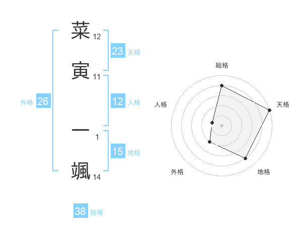 菜寅 一颯さんを姓名の画数から五運を鑑定