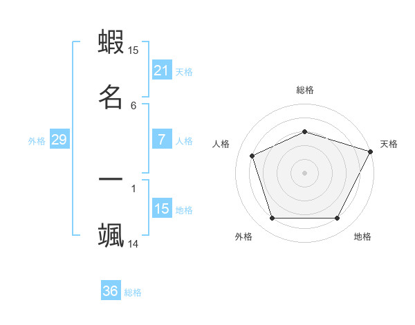 蝦名 一颯さんの天格は21画の5点!