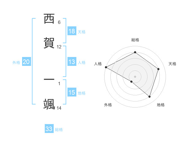 西賀 一颯さんの天格は18画の4点!