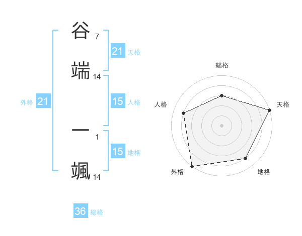 谷端 一颯さんの天格は21画の5点!