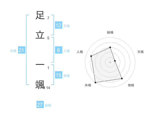 足立 一颯さんの外格は21画の5点!