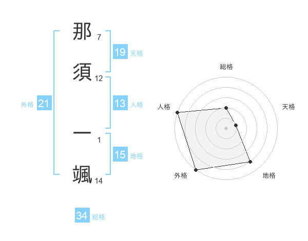 那須 一颯さんの天格は19画の1点!