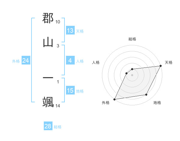 郡山 一颯さんを姓名の画数から五運を鑑定