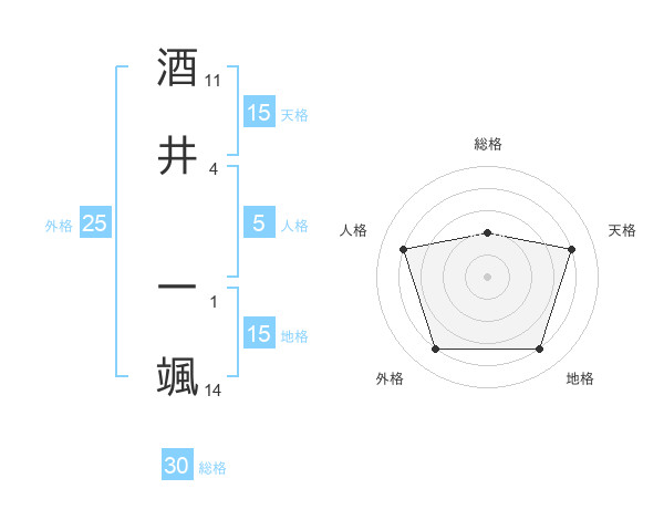 酒井 一颯さんを姓名の画数から五運を鑑定