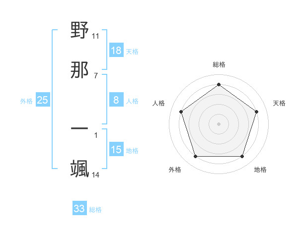 野那 一颯さんの総格は33画の4点!
