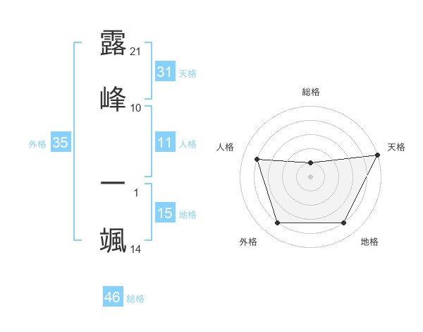 露峰 一颯さんを姓名の画数から五運を鑑定