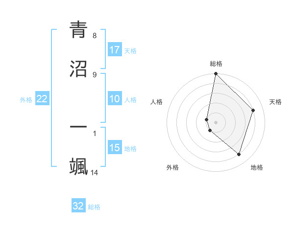 青沼 一颯さんを姓名の画数から五運を鑑定