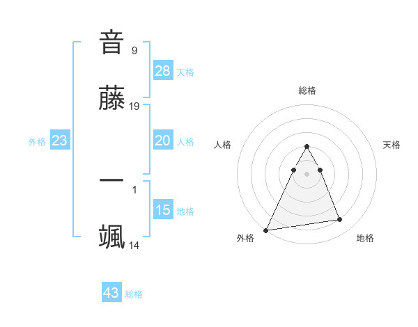 音藤 一颯さんの外格は23画の5点!