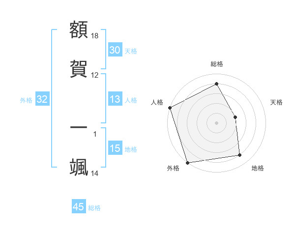 額賀 一颯さんの総格は45画の4点!