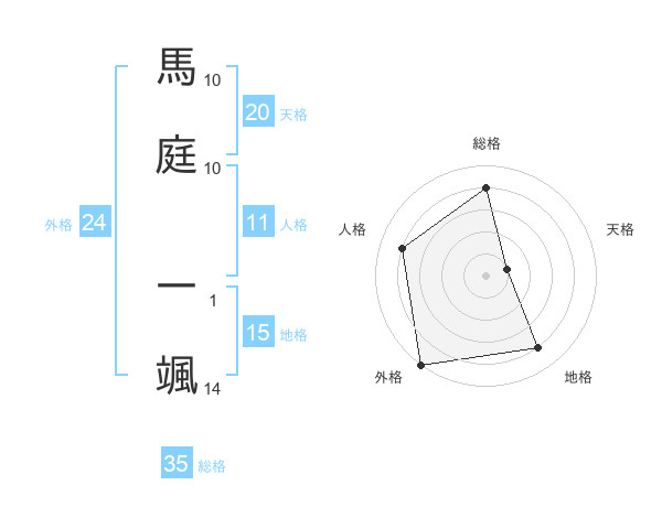 馬庭 一颯さんの総格は35画の4点!