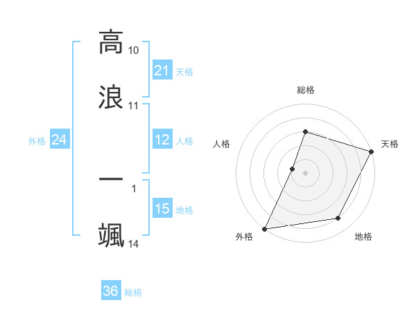 高浪 一颯さんの天格は21画の5点!