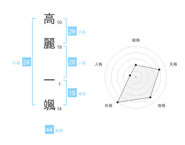 高麗 一颯さんを姓名の画数から五運を鑑定