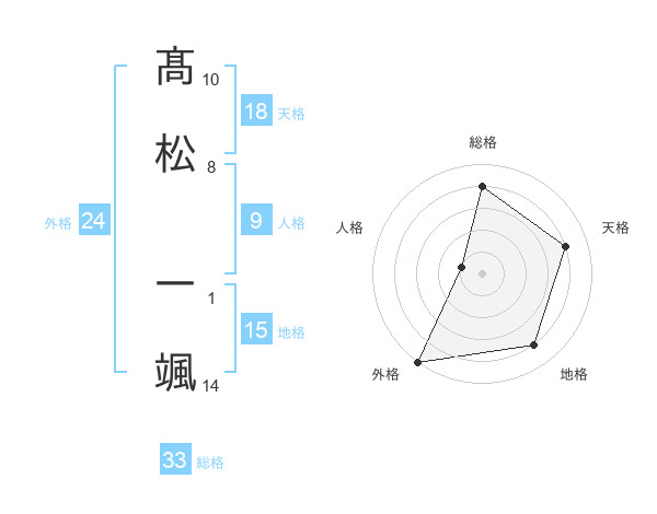 髙松 一颯さんを姓名の画数から五運を鑑定