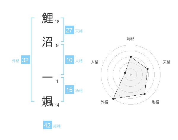 鯉沼 一颯さんの総格は42画の3点!