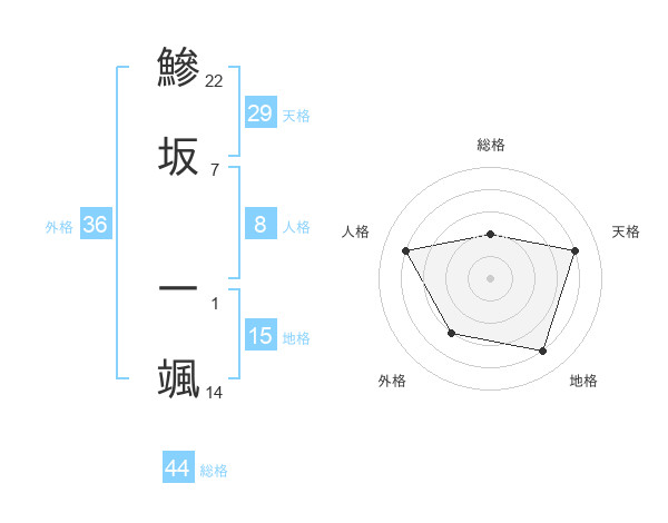 鰺坂 一颯さんを姓名の画数から五運を鑑定