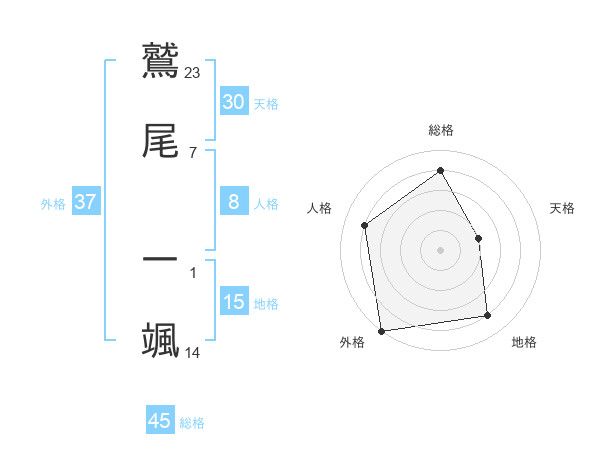 鷲尾 一颯さんの総格は45画の4点!