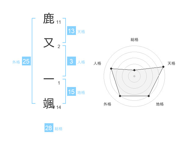 鹿又 一颯さんの天格は13画の5点!