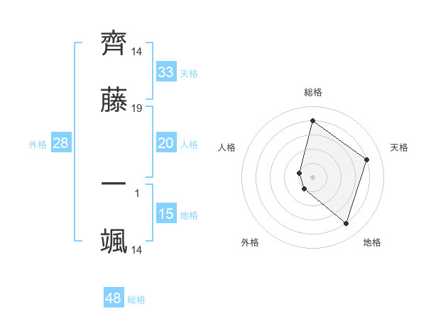 齊藤 一颯さんの天格は33画の4点!