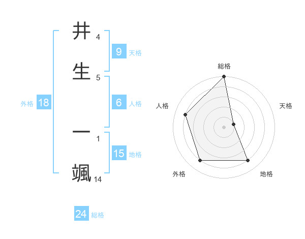 井生 一颯さんの総格は24画の5点