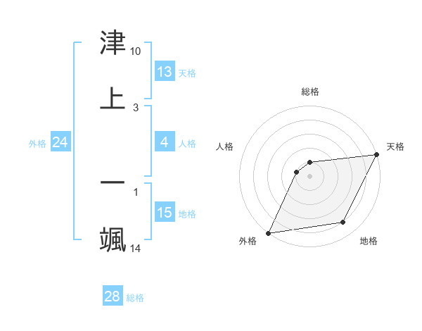 津上 一颯さんの外格は24画の5点!