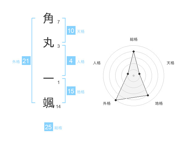 角丸 一颯さんの外格は21画の5点!