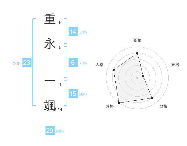 重永 一颯さんの総格は29画の4点!