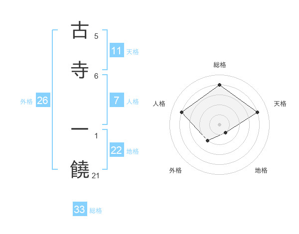 古寺 一饒さんの総格は33画の4点!