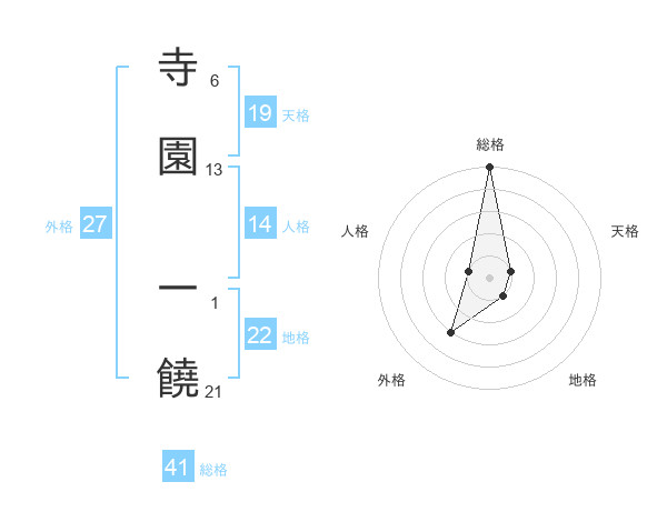 寺園 一饒さんの総格は41画の5点!