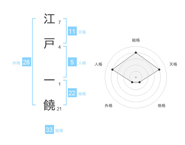 江戸 一饒さんの総格は33画の4点!