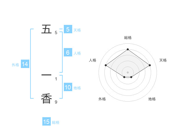 五 一香さんの総格は15画の4点!