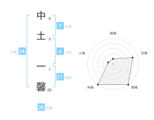 中土 一馨さんの外格は24画の5点!