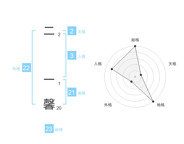 二 一馨さんの外格は22画の1点!