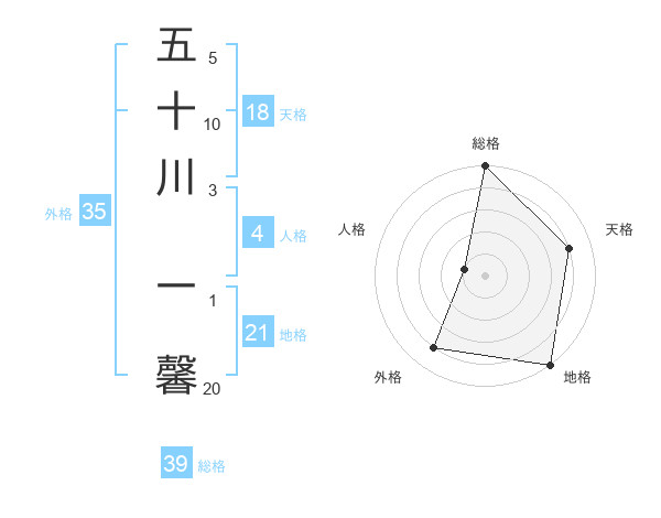 五十川 一馨さんを姓名の画数から五運を鑑定