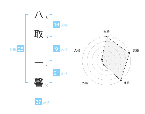 八取 一馨さんの総格は37画の5点!