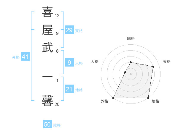 喜屋武 一馨さんの天格は29画の4点!
