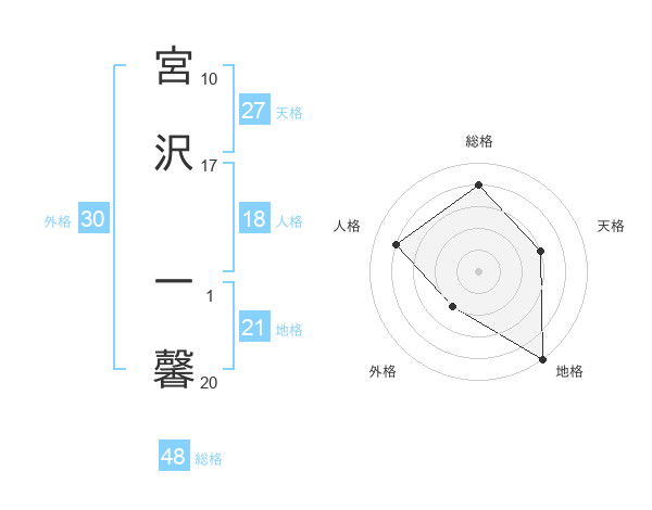 宮沢 一馨さんを姓名の画数から五運を鑑定
