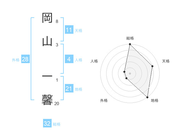 岡山 一馨さんを姓名の画数から五運を鑑定