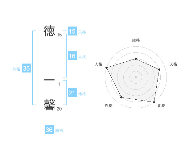 徳 一馨さんの地格は21画の5点!