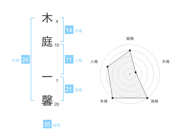 木庭 一馨さんを姓名の画数から五運を鑑定