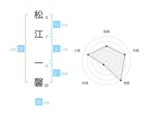 松江 一馨さんの総格は36画の3点!