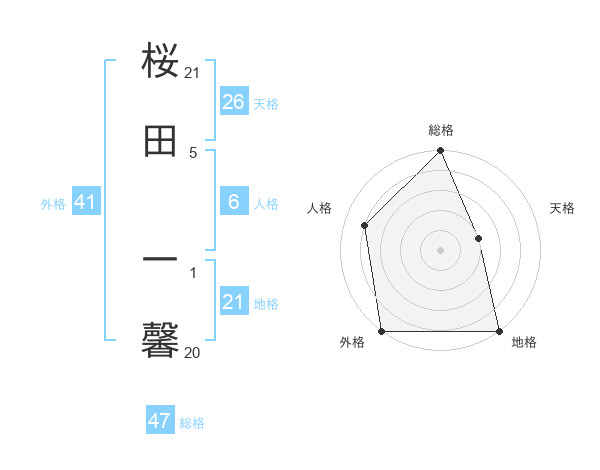 桜田 一馨さんを姓名の画数から五運を鑑定