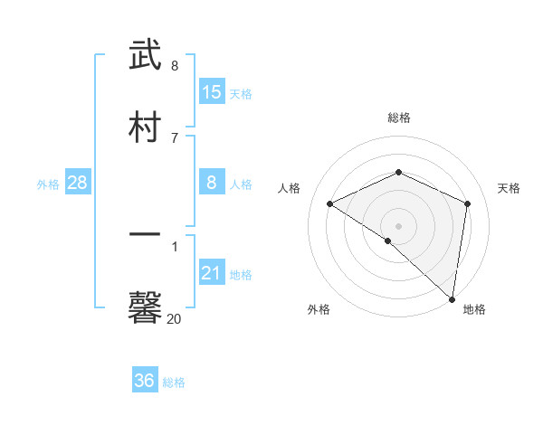 武村 一馨さんの地格は21画の5点!