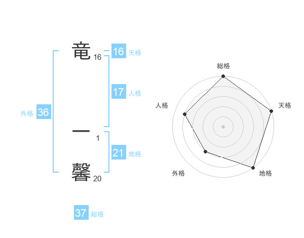 竜 一馨さんの総格は37画の5点!