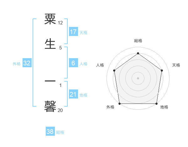 粟生 一馨さんの総格は38画の4点!